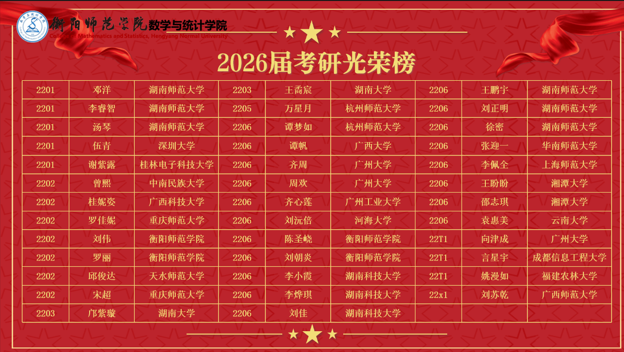 随着2026年全国硕士研究生招生录取工作落下帷幕,我院考研工作传来喜报。截至目前,学院共有38名应届毕业生成功考取硕士研究生,实现深造梦想。其中,15名同学被211、985重点高校录取,录取层次与质量同步提升,充分彰显了学院近年来在学风建设与人才培养方面的扎实成效。