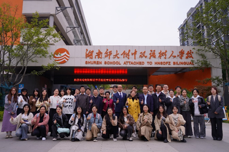 为深化校校合作协同育人,提升学科教学(数学)硕士研究生的教育实践能力,10月29日,在学院党总支书记彭巧燕等带领下,我院研究生团队赴长沙市湖南师大附中双语树人学校,开展“雁城星谊·牵手树人”教育见习研习活动。在树人学校的精心组织下,本次活动涵盖校园参观、见面授牌、课堂观摩和评课研讨等环节,内容充实、节奏紧凑,师生收获丰富。