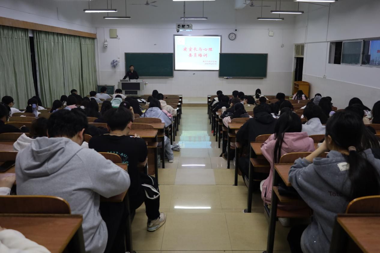 4月7日晚,数学与统计学院在九章楼505教室举办寝室长及心理委员专题培训。本次培训由学工办主任兼团委书记黄钽成老师主讲,围绕消防安全、防诈骗、安全上网、心理健康等重点内容展开,旨在强化学生骨干的责任意识与履职能力,进一步明确寝室长与心理委员的工作职责。