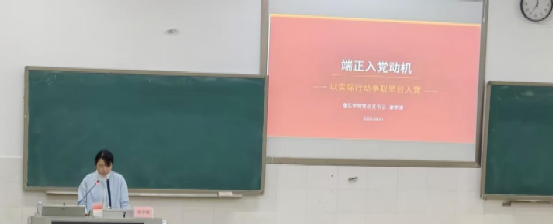 正动机、观时政,明确时代责任。授课老师围绕端正入党动机,剖析了功利化、盲目从众等误区,引导学员从思想和行动上向党组织靠拢。学员们反思自身,明白了:入党不是为了个人利益,而是为了奉献和担当,要真正从内心深处认同党的宗旨。授课老师结合时政热点,解读国家发展战略和青年关注的话题,引导学员用党的创新理论分析现实问题。学员们懂得了:要关心国家大事,提高政治判断力,把专业学习与国家需要紧密结合起来,在时代发展中主动作为。