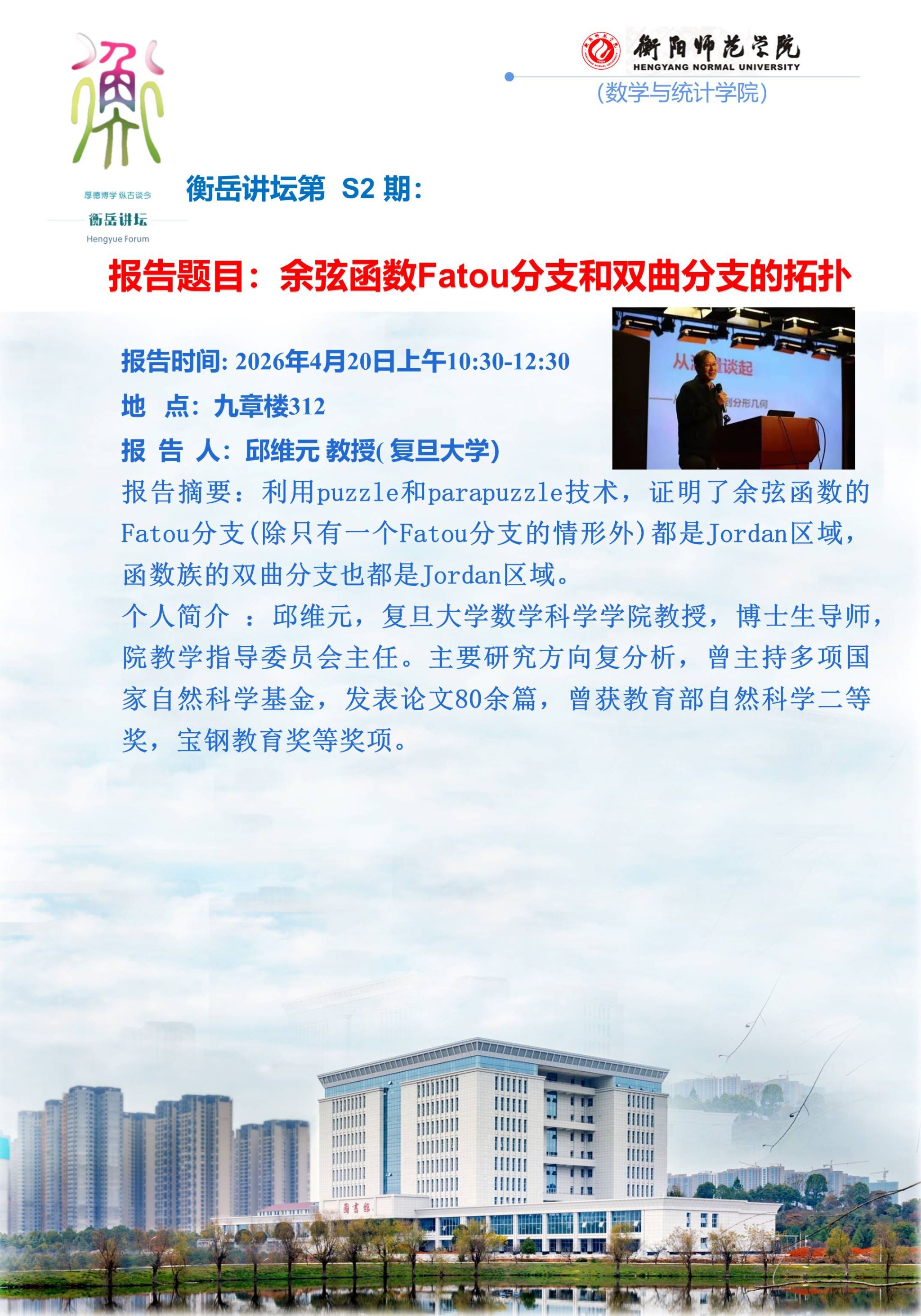 学术讲座预告(2026.04.20)/邱维元:余弦函数Fatou分支和双曲分支的拓扑